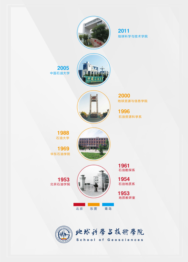 1954年3月19日成立石油地质系(简称地质系),1961年6月14日更名为石油勘探系(简称勘探系),1996年12月31日更名为石油资源科学系(简称资源系),2000年11月30日改建为地球资源与信息学院,2011年4月20日更名为tyc7111cc太阳成集团。