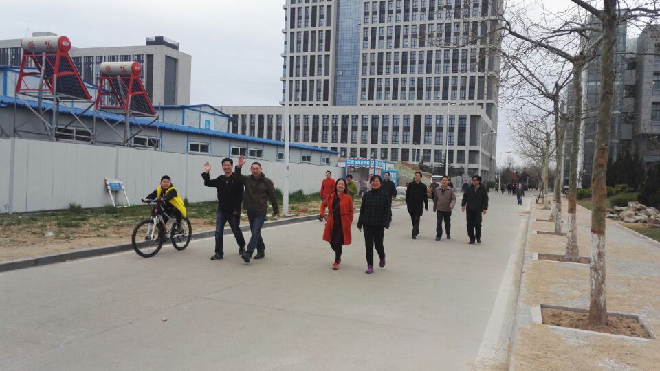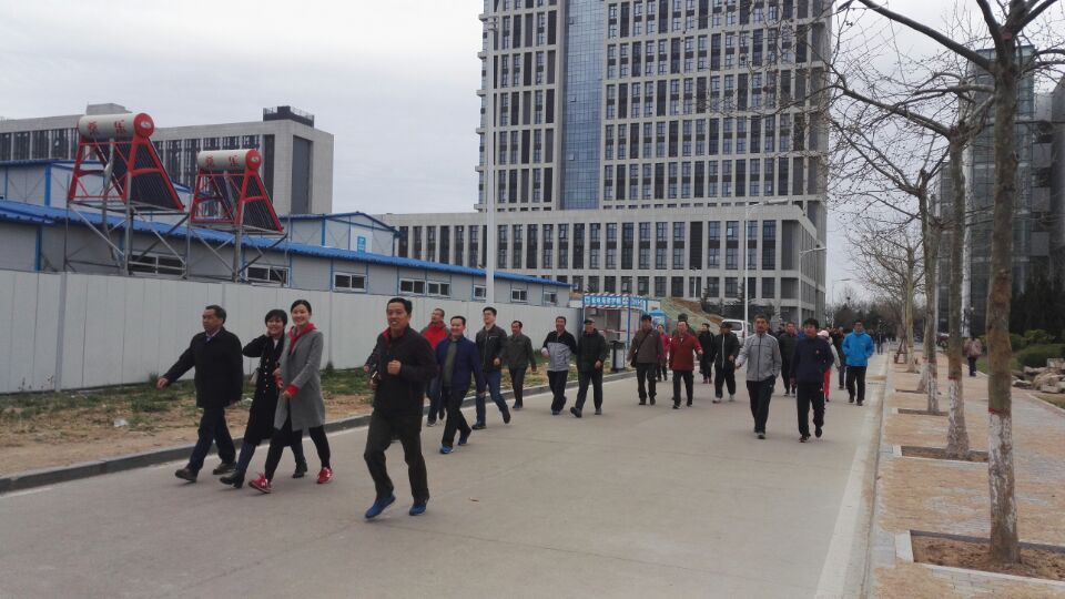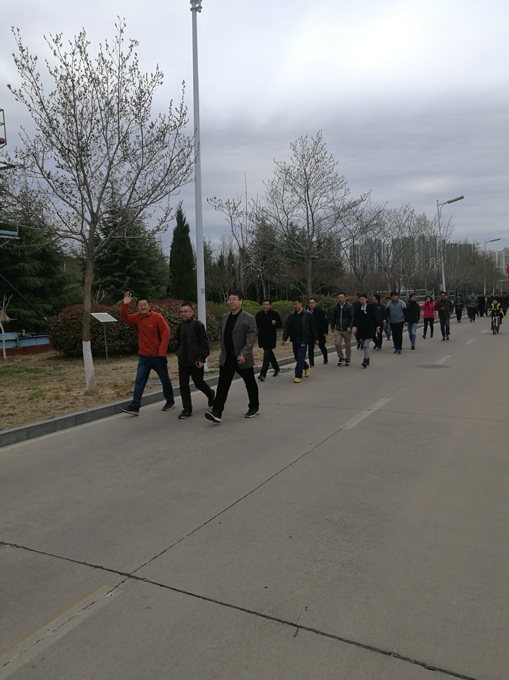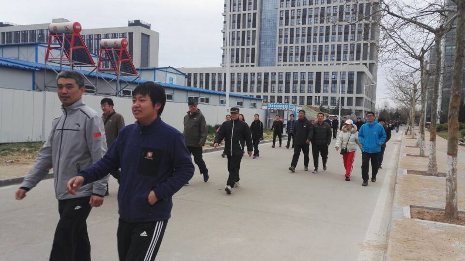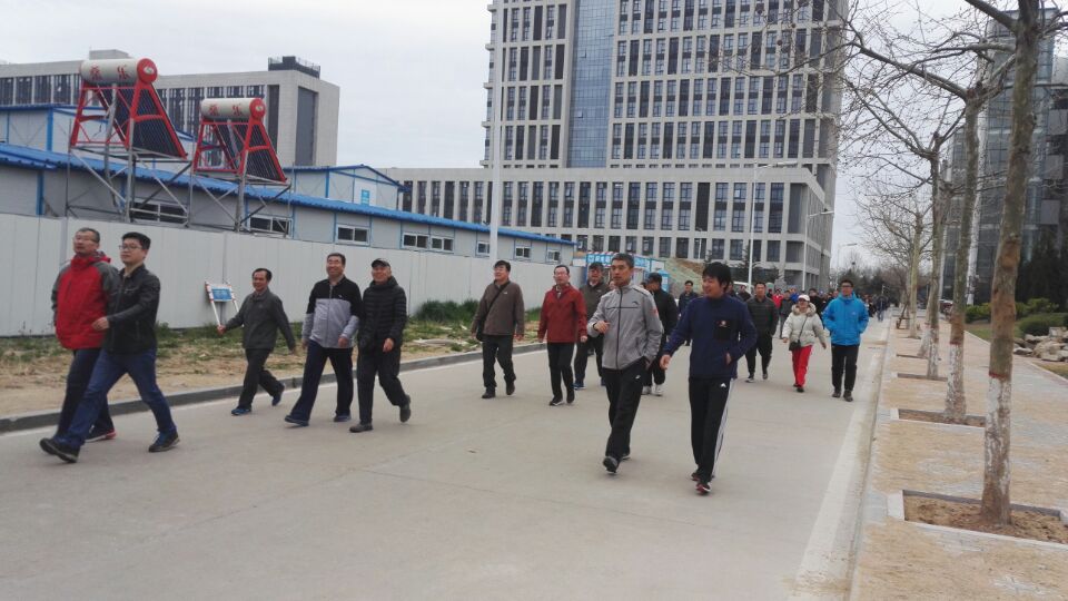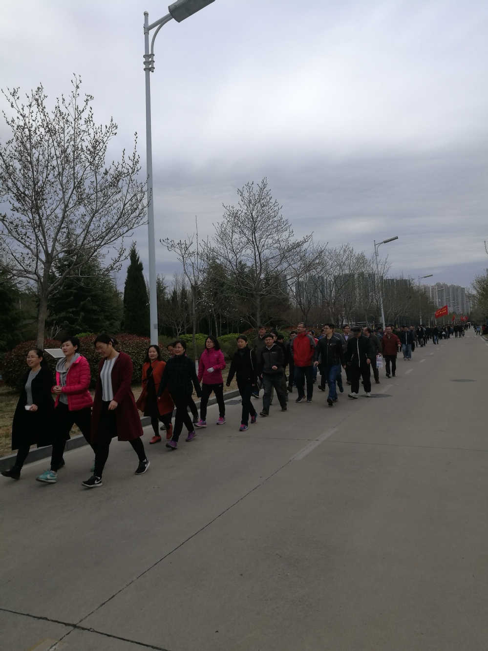 操场集合,我院参加健步行的比旁边的单位人多很多!