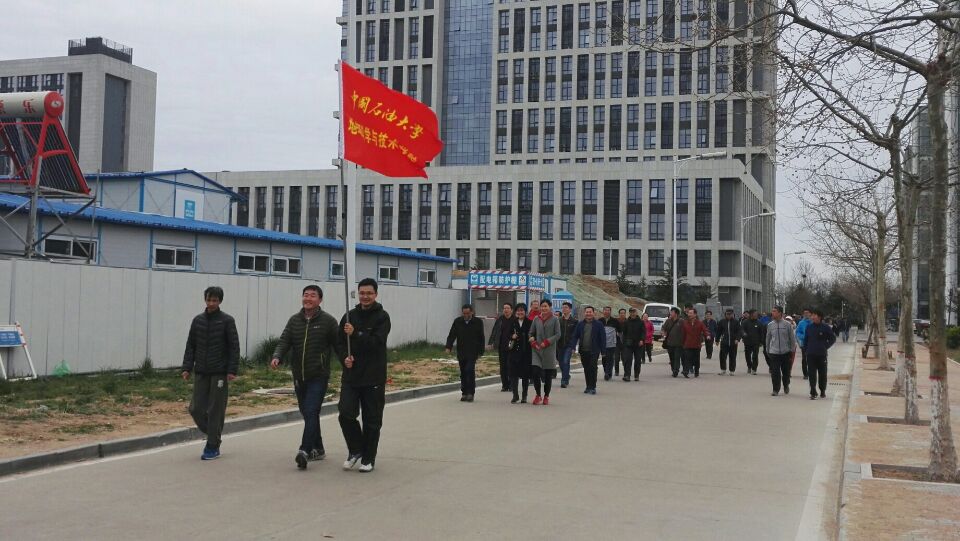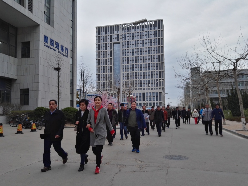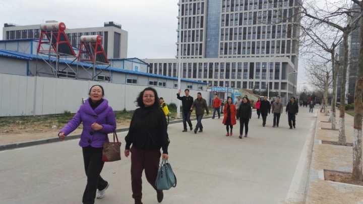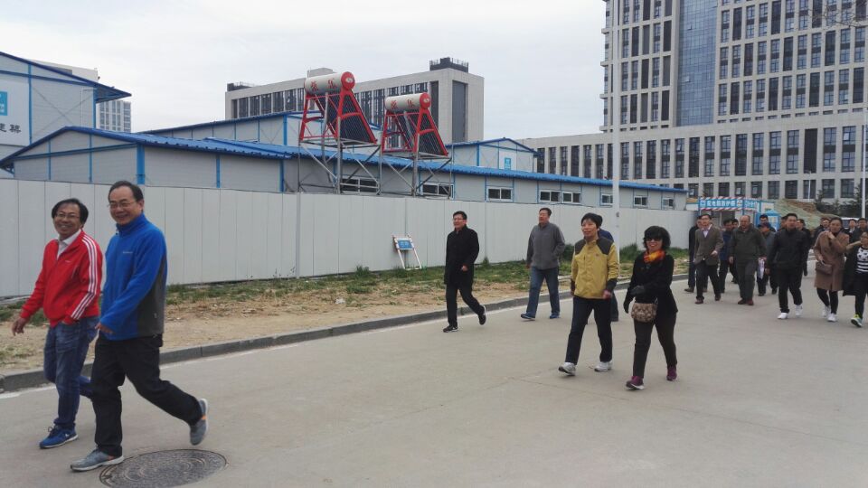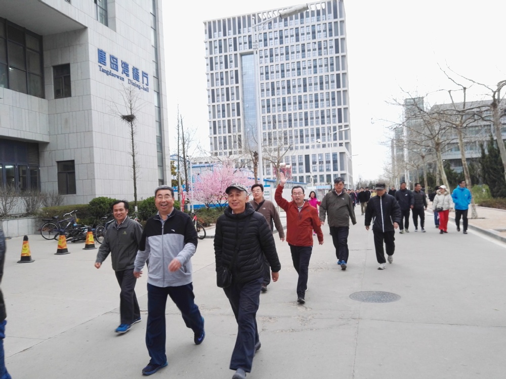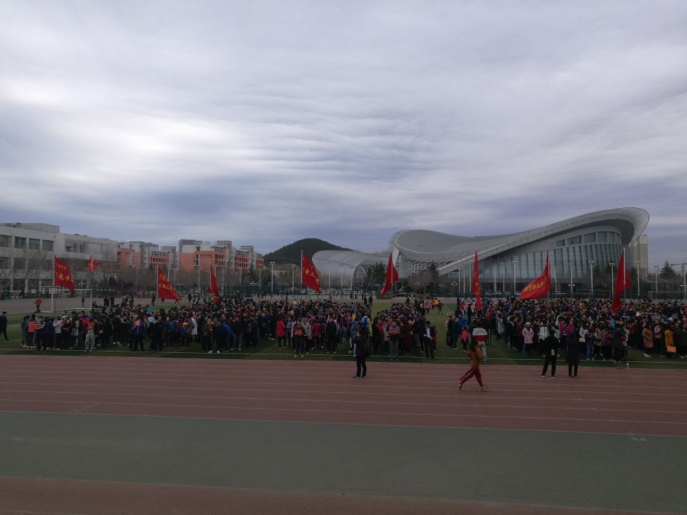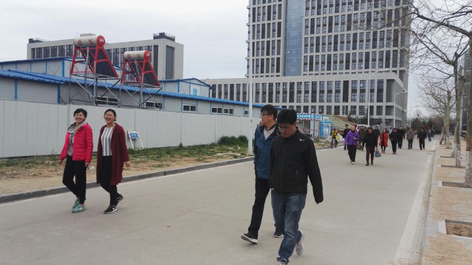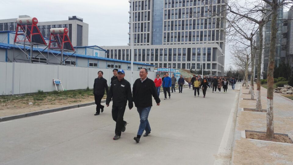 操场集合,我院参加健步行的比旁边的单位人多很多!