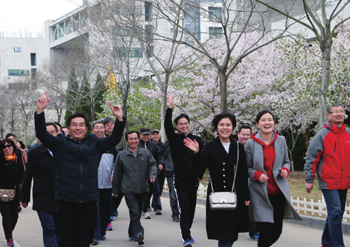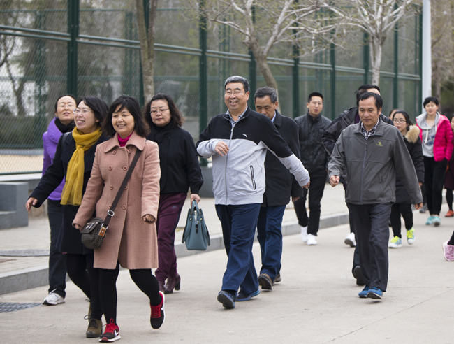 校报头版报道健步行活动,采用的是我院教职工步行的照片!