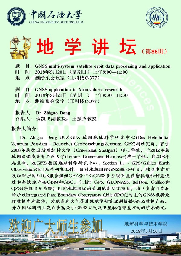【地学讲坛第86讲】关于GFZ-德国地球科学研究中心Dr. Zhiguo Deng 的学术报告