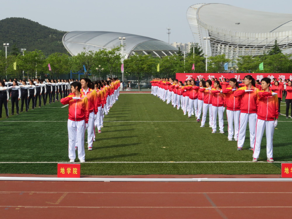 现在走向主席台的是tyc7111cc太阳成集团代表队。走在队伍前面的是党委书记张卫东同志和工会主席张军华同志。他们共派出130名运动员参加本次比赛。这是一支有着优良传统的威武之师,他们精神饱满、斗志昂扬,艰苦奋斗是他们的传统,勇于争先是他们的本色,“脚踏实地,胸怀全球”是他们的性格,“追求卓越,争创一流”是他们的目标。今后,地院人将继续发扬勘探精神,为学校“双一流”建设贡献力量。