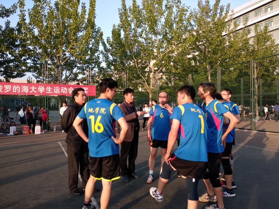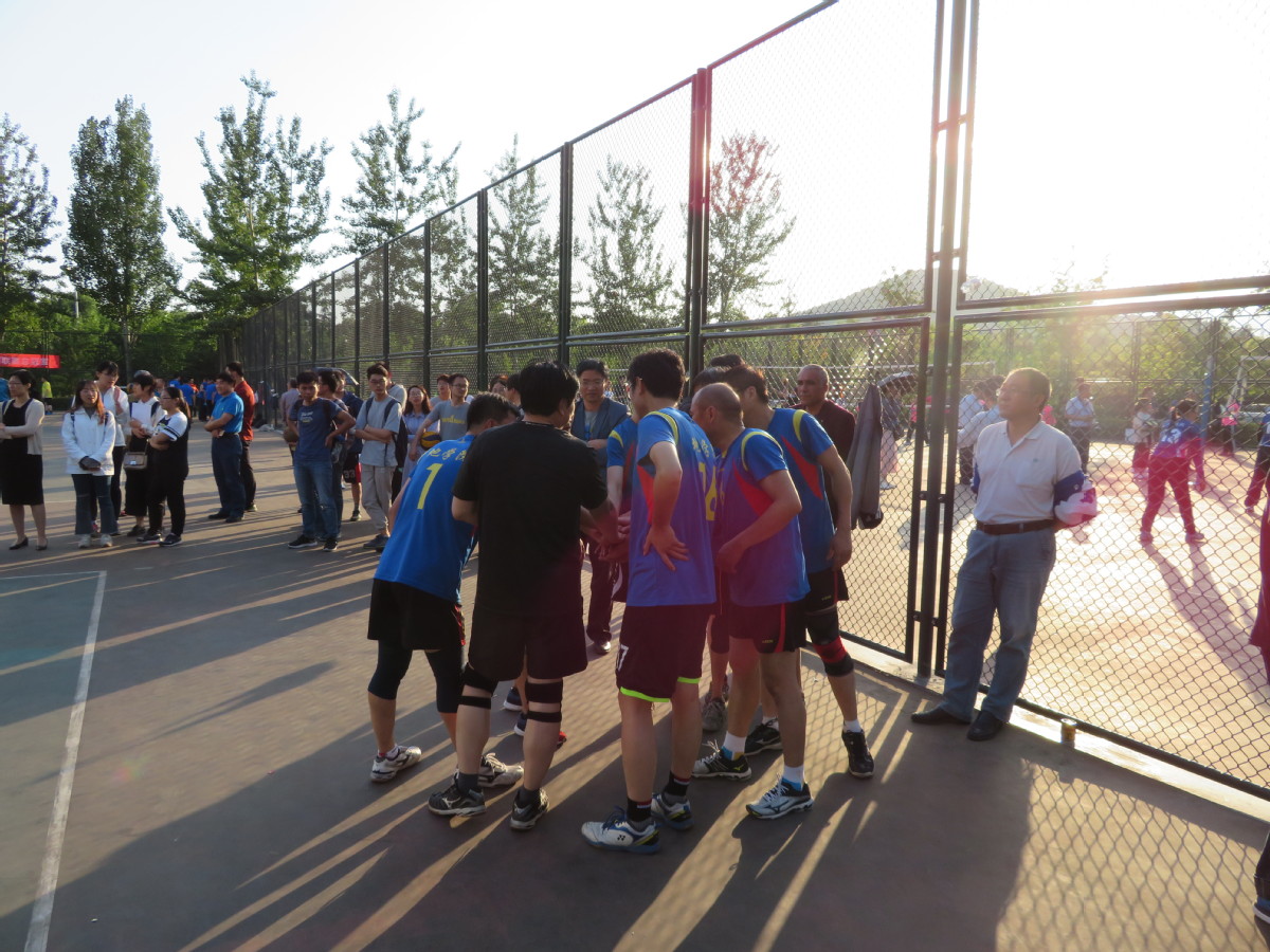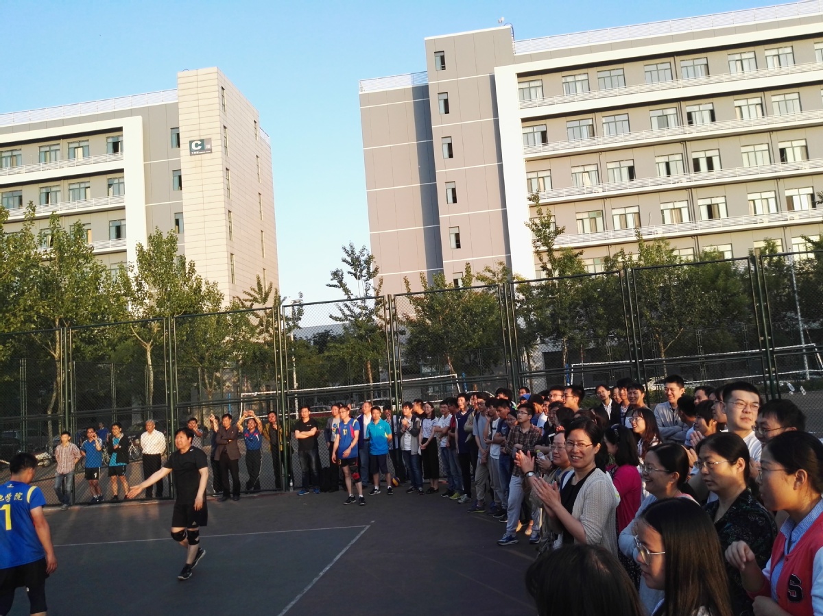 远远站着的是石工的赵书记,组织部万部长也去了,不好意思镜头对着他,理学院郭院长、罗主席,信控的马主席既是观众,也应该关注着双方的比分......