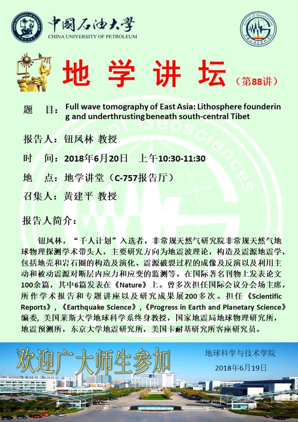 【地学讲坛第88讲】关于钮凤林教授学术报告的通知