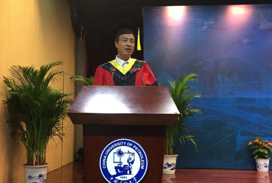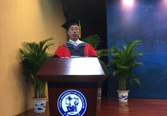 学位授予结束后,院长林承焰代表学院向所有完成学业,即将踏上征途的毕业生致以最诚挚的祝贺。他表示,地学院从一个教研室单独建系,经过65年的风雨兼程、砥砺前行,如今已取得长足发展,在一流学科建设的快车道上奋力前进。在座的每一位毕业生,是学院事业发展的亲历者,更是参与者,学院的每一点进步都有着同学们的支持和贡献,希望今后同学们能一如以往地关注和支持学校、学院发展,在未来的道路上发扬勘探精神,敢为人先;脚踏实地,胸怀全球;坚持学习,追求卓越。