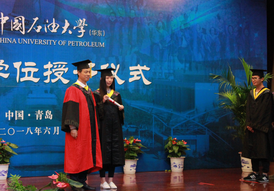 学位授予仪式上,学院学位评定分委员会主席、院长林承焰教授上台一一为每一名毕业生拨穗正冠,授予学位并合影留念。今年,我院共有429名本科生,313名硕士研究生,25名博士研究生圆满完成学业,取得学位。