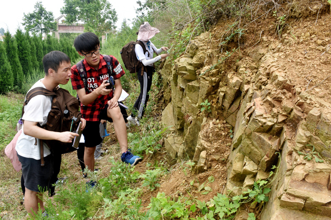 参赛学生就野外地质构造进行讨论 潘奕铭摄影