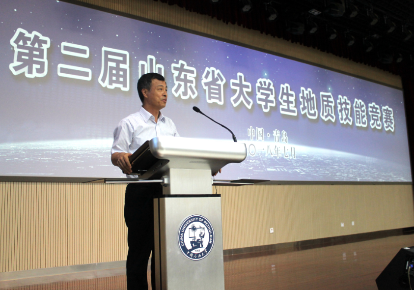学院院长林承焰在闭幕式上发表致辞,他肯定了选手们团结协作、沉着冷静的精神和扎实的知识、实践基础,并对为本次竞赛辛勤付出的老师、志愿者们表示感谢。随后,林承焰宣布第三届山东省大学生地质技能竞赛承办方为中国海洋大学。中国海洋大学地球科学学院院长王厚杰表示,将力求把地质技能竞赛办的更好,打造一个推动地质学的人才培养质量提高,促进大学生的地质专业思想,促进各个高校之间的互融互通的优秀平台。
