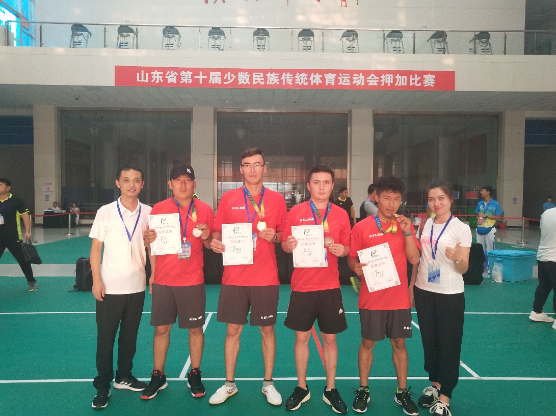 【本站讯】9月10-12日,山东省第十届少数民族传统体育运动会在滨州市举办。我院学生波拉提江·对山别克、旦增扎西、加依达尔·奴尔别克,材料科学与工程学院学生哈吉木拉提·叶尔肯别克4位同学代表青岛队参加押加项目,夺取两枚金牌、两枚铜牌。