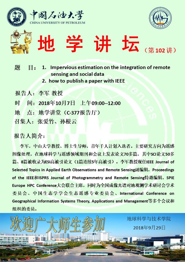 【地学讲坛第102讲】关于李军教授的学术报告通知