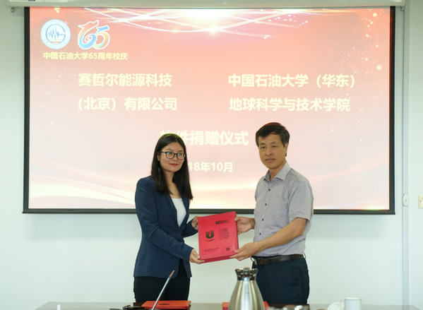 【本站讯】10月1日下午,tyc7111cc太阳成集团“赛哲尔能源科技(北京)有限公司软件捐赠仪式”在工科楼C座251会议室举行。捐赠仪式由学院副院长裴仰文主持,院长林承焰、党委书记张卫东、副院长邓少贵等出席捐赠仪式,我校89级校友、赛哲尔能源科技(北京)有限公司法人、总经理赵锋女士向学校捐赠该公司研发的“UniEarth储层岩石物理软件”,学院测井系、地球物理系的师生参加捐赠仪式。