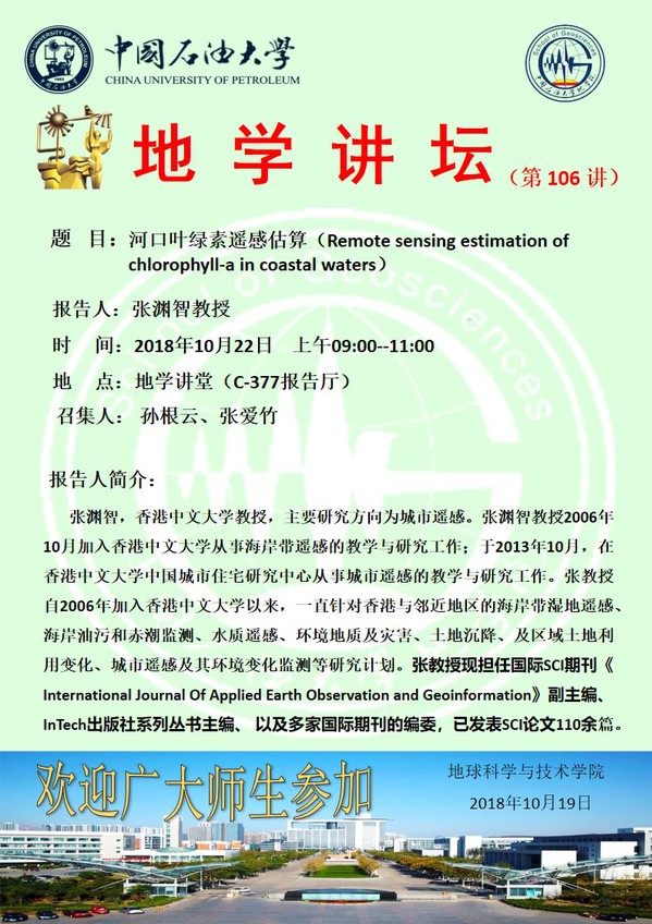 【地学讲坛第106讲】关于张渊智教授的学术报告通知
