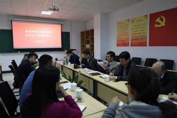 【本站讯】11月15日,地学院党委中心组开展2018年第三次集体学习,学习贯彻全国教育工作会议和教育部关于本科教育文件的精神,结合学校人事人才会议和学科、学位点、专业一体化建设有关精神进行学习研讨。地学院党委中心组成员及群团负责人和机关科级干部参加了学习。