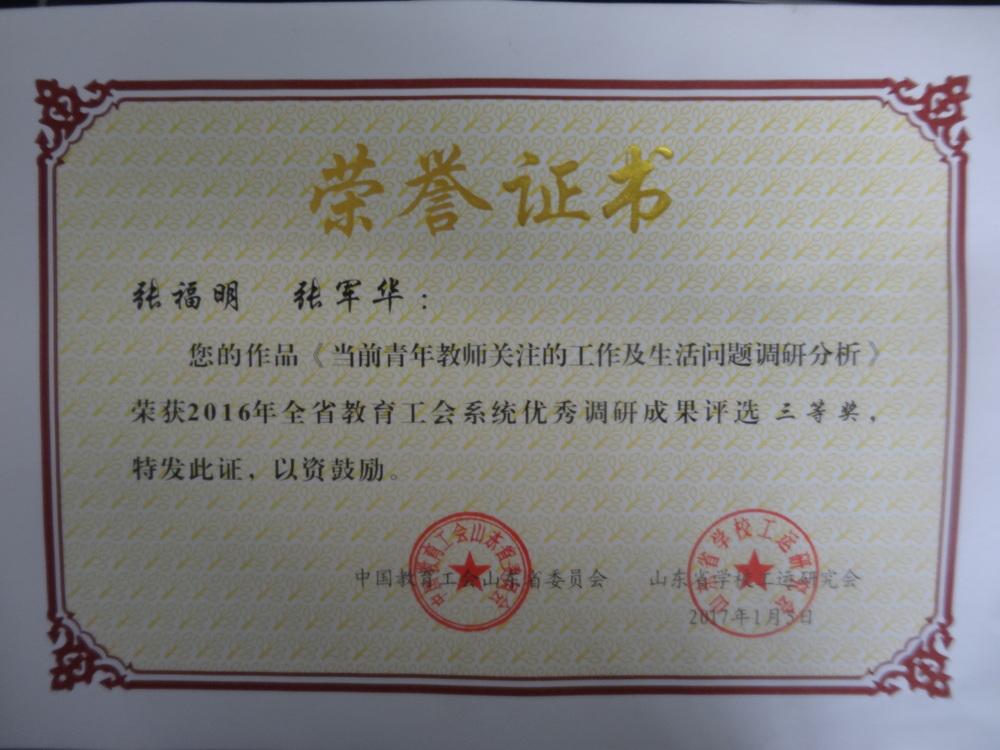 工会系统省级奖励(2017年)
