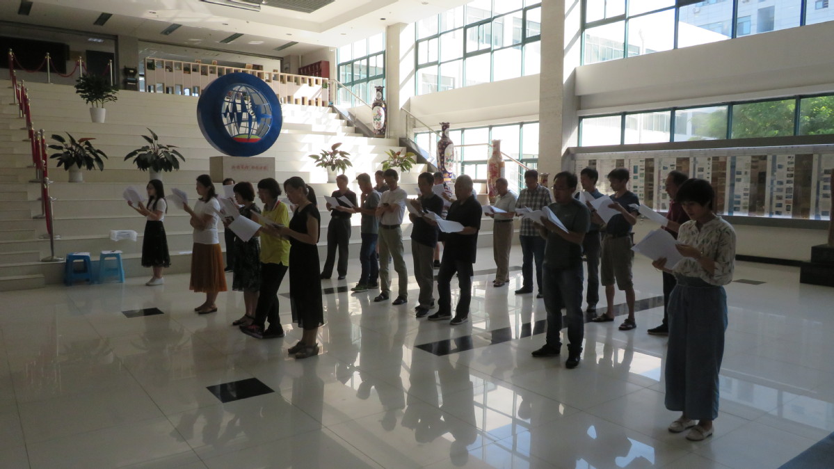 我们要特别感谢像这些照片里练习的老师,他们是平时练习最多的,他们才是大合唱的功臣,特别是低声部的老师!咱们一起一起从7月2日开始直到9月下旬,从《春天的故事》、《前进吧,中国共产党》走到了《勘探队员之歌》,不容易。