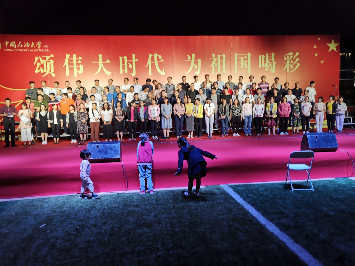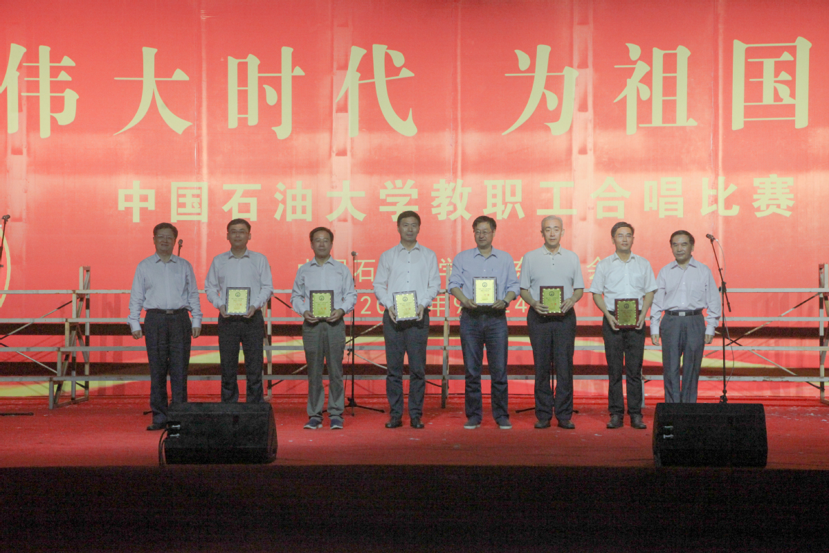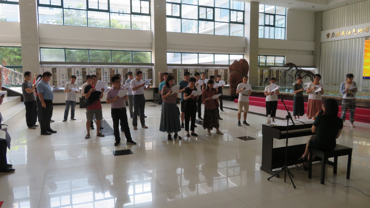 总结:1、合唱曲目《勘探队员之歌》有地院特色,搭配场景引人入胜;2、全体合唱人员关键时候给力,指挥张卫海老师教唱、指导高水平,朗诵董春梅、谭宝海老师添彩;4、院长、书记大力支持,演出筹备组策划到位,工会张蕾、张敏及全体干部组织尽力,导员、宣传及场景学生出力。我们还要感谢周瑶琪等老教师为演唱站台,全体党支部书记参加比赛,操应长副校长作为嘉宾全程给大家录像、关注学院的比赛,等等。