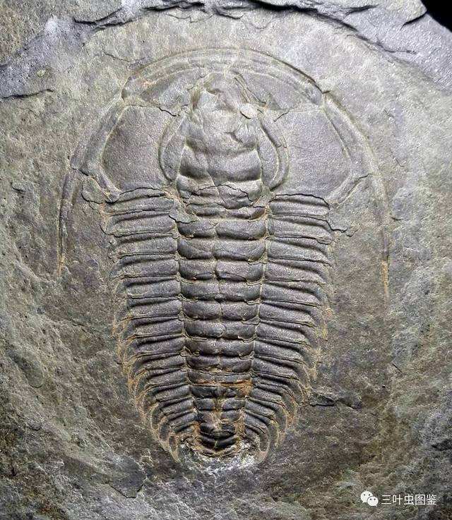 头盖呈亚方形。头鞍锥形,凸起,有三对头鞍沟。眼叶呈新月形,后端距头鞍甚远。眼脊清楚,向后斜伸。内眼颊平缓凸起,约为头鞍宽度的1/3。内边缘凸起,与外边缘宽度近相等,具一较宽的中脊。前边缘沟无任何凹坑构造。后侧翼大而宽,后侧沟宽深。面线前支向外分散,与中轴成30一40°交角,后支向外向后延伸。胸部15节,第9节有一较长而粗的轴刺。尾部小而凸起,具有一对凹坑。