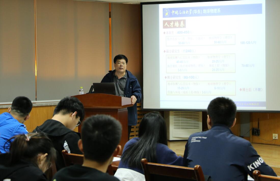 李振春教授从地球物理系的教师团队、学科建设、学生就业以及专业课程等方面做出了详细的介绍,使参会成员对地球物理系和学院有了更加全面、系统的认识与了解,对今后的升学、就业有了更加明确的规划。李振春教授依托地球物理学“给地球做CT”、勘查技术与工程(物探)“透视地球,探寻宝藏”的学科目标,从学习实践内容、计划安排与时间分配、学习方法与目标等方面对学生的学习情况进行了细致、准确的指导,指出课堂应当是“听讲、提问、互动、质疑、辩论”的课堂,要求学生珍惜课堂时间、提高效率。活动最后,李振春教授还就学生提出的就业方向、保研与考研、课余时间规划等问题做出了详细的回答与指导。
