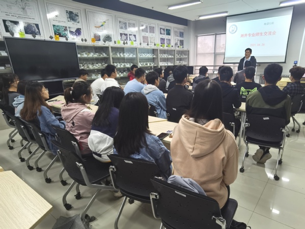 4月26日下午,2020级测井专业在工科楼C座地质博物馆召开师生交流会,开启了测井专业分年级“地语引航”活动的第一站,2020级测井全体学生以及邓少贵副院长、张锋教授、邵才瑞教授,以及陈雪莲、于华伟和张凯老师参加了交流会。