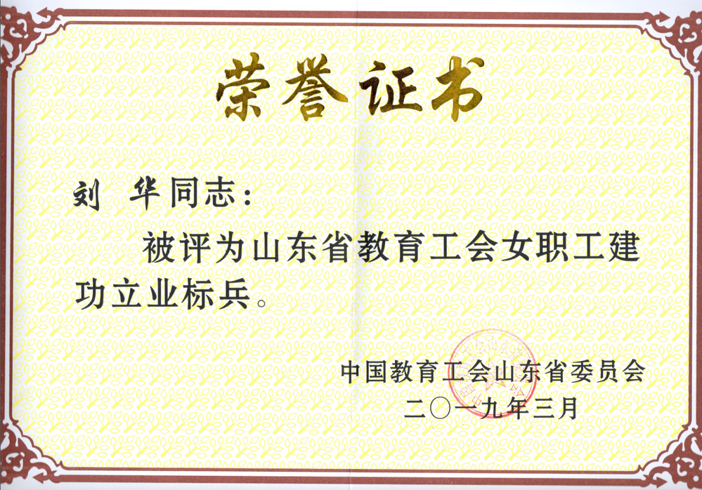山东省教育工会女职工建功立业标兵——2019年刘华