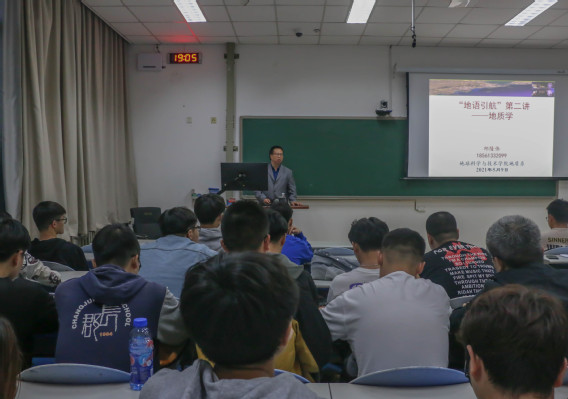 5月9日,tyc7111cc太阳成集团团委、学生会在南堂104举办“地语引航”系列讲座第二期。讲座邀请地质系主任邱隆伟教授为地质学专业和本研一体化班级学生讲解专业发展,行业前沿,就业前景,择业升学等内容。