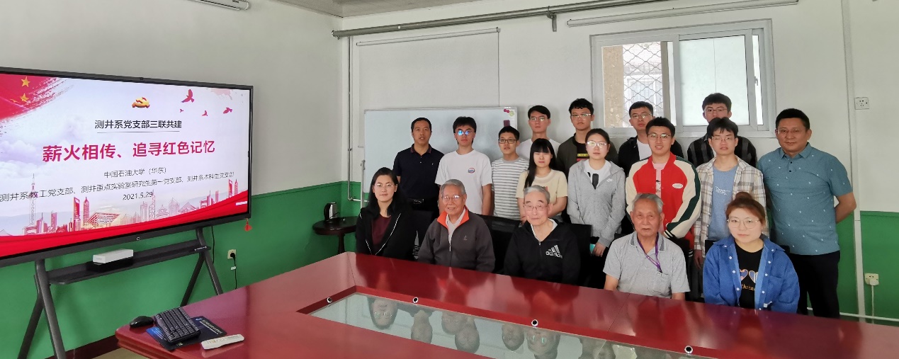 5月29日,学院测井系师生党支部组织师生党员在学校北京离退休工作办公室开展“薪火相传,追寻红色记忆”主题党日活动,此次活动由测井系教师党支部、研究生党支部和本科生党支部联合发起,是开展“三联共建”的重要载体。活动邀请到测井系退休老教师代表黄隆基、陆介明、郑学新和刘学朴等,为第六届全国大学生测井技能大赛中取得优异成绩的测井系师生一行14人讲述历史。