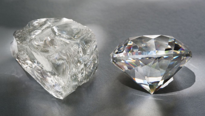 [物理性质]无色透明,或带蓝、褐、黄、绿、黑等色。强金刚光泽。硬度10,是硬度最大的矿物。(绝对硬度是石英的1000倍,为刚玉的150倍)。在紫外线的照射下,发紫、蓝、绿色萤光。熔点高,化学性质极稳定。