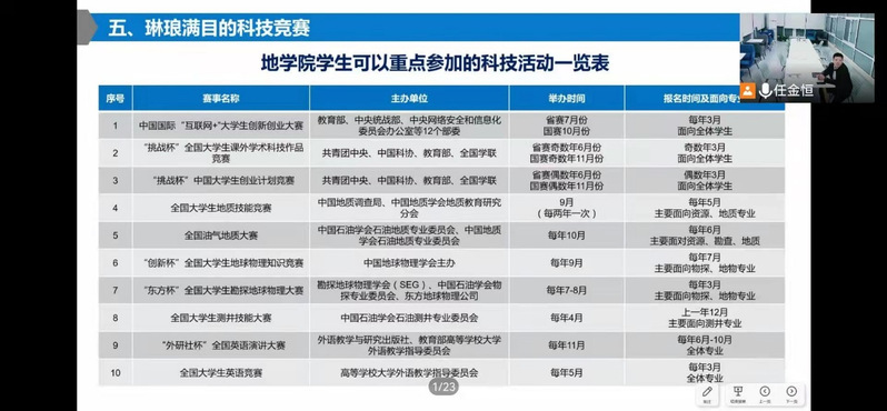 (辅导员任金恒介绍大学生科技竞赛活动)