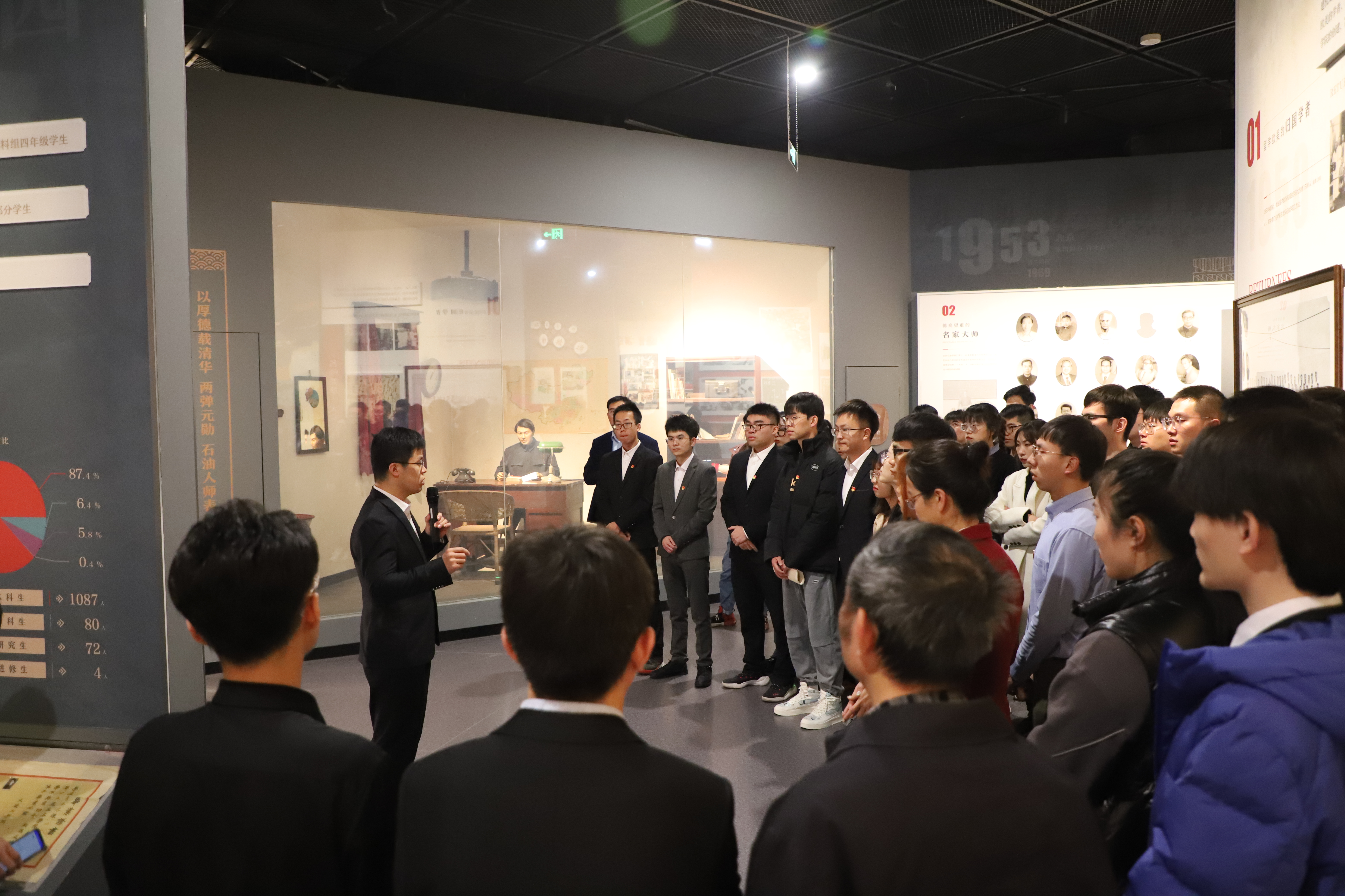 “祖国和人民的利益在期待着你们以高度的热情和毅力,把祖国的石油资源开发出来。”朱德委员长在给北京石油学院学生的回信中表达了对青年学生的殷切期盼。“把爱情献给你,把一生献给祖国。”在学校档案馆留存的中国化学工程学家、核工业学家、两弹功臣、北京石油学院副院长曹本熹写给妻子的150余封信中,字里行间无不流露出对家人的惦念和对祖国石油事业的一片赤诚。“从校园走向荒漠,助推国家第一颗原子弹、氢弹成功爆炸,解决朝鲜战争用油混乱问题,曹本熹的个人事迹化为老一辈石大人为守护国家安全、建设社会主义事业鞠躬尽瘁的一道缩影,石大人用血汗奉献党的光辉历程。”在太阳成tyc7111cc档案馆曹本熹塑像前,全体党员身姿笔挺,表情肃穆,听档案馆教师马梦华深入解读曹本熹先生个人事迹。
