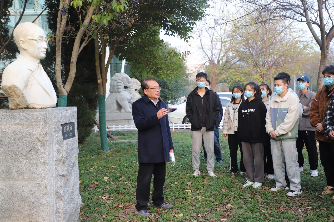 活动伊始,在蒋有录教授、张立强教授的带领和讲解下,师生深入了解孙健初等老一辈石油地质人的生平,回顾地学院发展的光辉历程,加强对资源专业的认识。在孙健初、冯增昭等前辈的雕像、照片面前,党支部成员目光一致,肃然起敬。