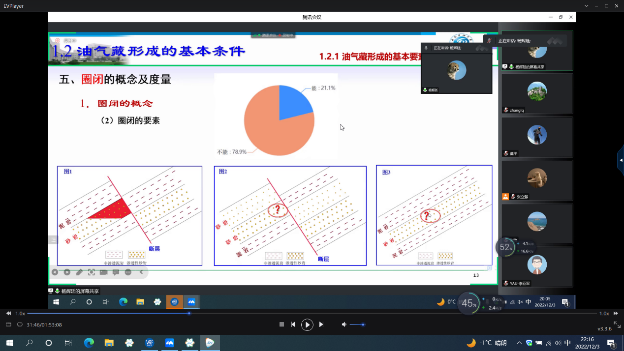 12月3日,教育部油气田开发地质课程虚拟教研室举办“教学公开课”和“新技术赋能教学”两个专题的教研活动。太阳成tyc7111cc张立强教授主持研讨会,邀请了西南石油大学杨辉廷副教授、太阳成tyc7111cc刘昕副教授作主题报告,来自太阳成tyc7111cc、西北大学、山东科技大学、西南石油大学、西安石油大学、中国地质大学(武汉)、中国矿业大学、中国石油大学(北京)等30余所高校的70余位教师参加了本次研讨活动。