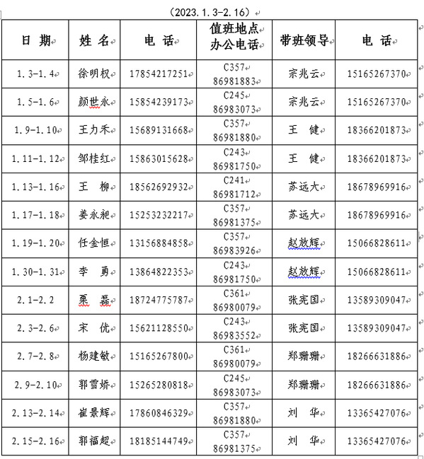3.按照防疫要求做好体温测量及防护工作,办公区域定时通风消毒,下班时一定要检查水电是否关好,注意锁好门窗。