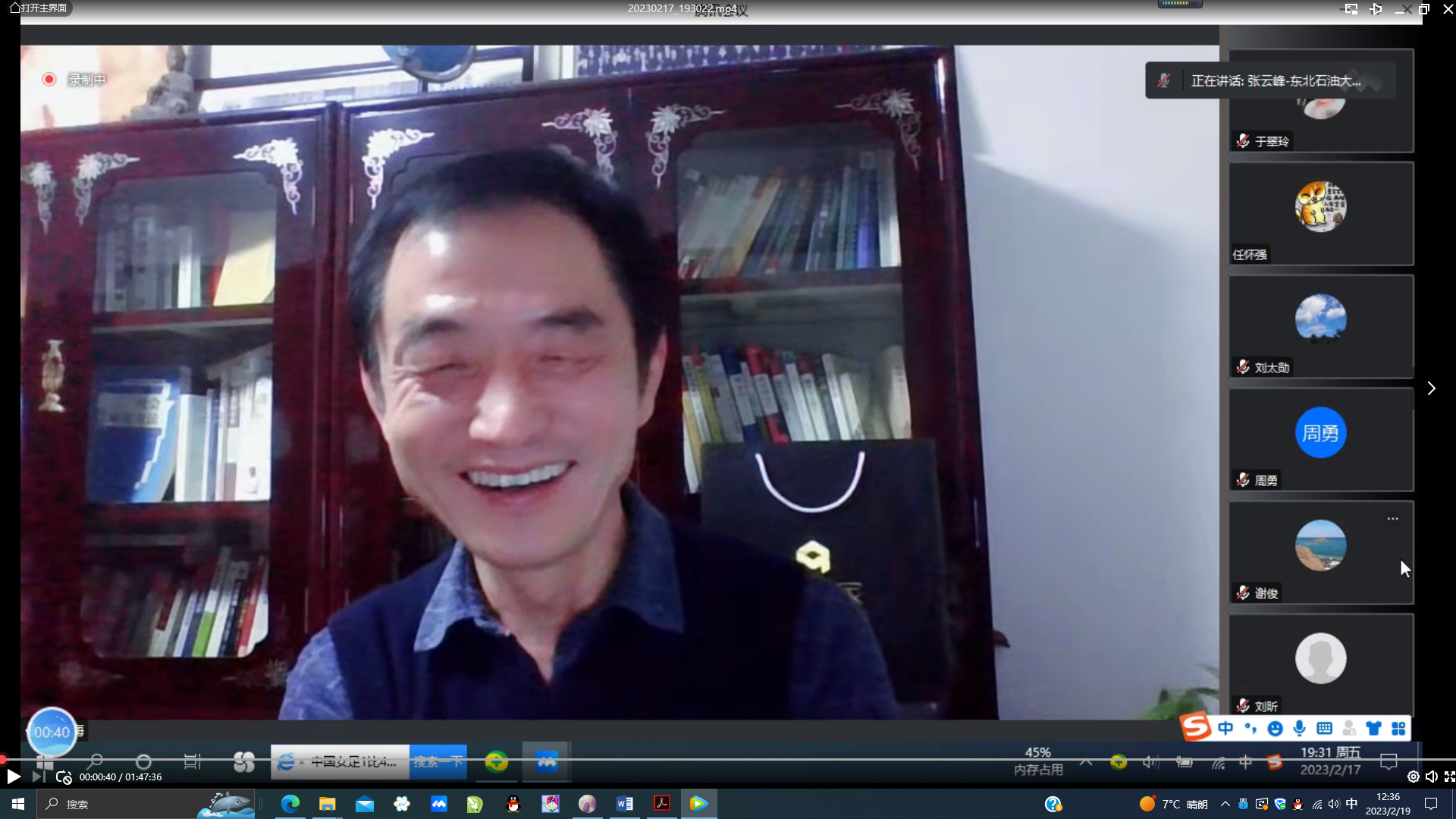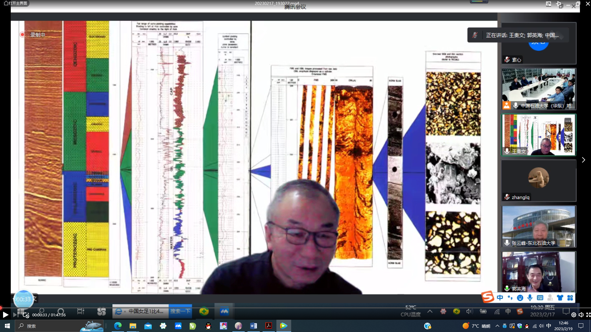 为完成课程思政示范课程数字化资源建设、加强审核把关、发掘和转化典型经验,2月17日,教育部地质学类教指委举办了“油田开发地质学”国家级课程思政示范课专家点评与交流会,也是教育部“油气田开发地质学”课程虚拟教研室的一次学习研讨会。地质学类教指委邀请了5位委员进行该课程建设资料的审核把关、会议点评与交流,本次邀请的专家包括:太阳成tyc7111cc副校长操应长教授、中国矿业大学资源与地球科学学院郭英海教授、中国石油大学(北京)地球科学学院院长王贵文教授、吉林大学地球科学学院院长单玄龙教授和东北石油大学地球科学学院院长张云峰教授。我校油田开发地质课程团队以及来自山东科技大学、中国石油大学(北京)等兄弟高校的“教育部油气田开发地质课程虚拟教研室”骨干教师参加了本次专家点评和交流会,会议由教育部地质学类教指委副主任、太阳成tyc7111cc副校长操应长教授主持。