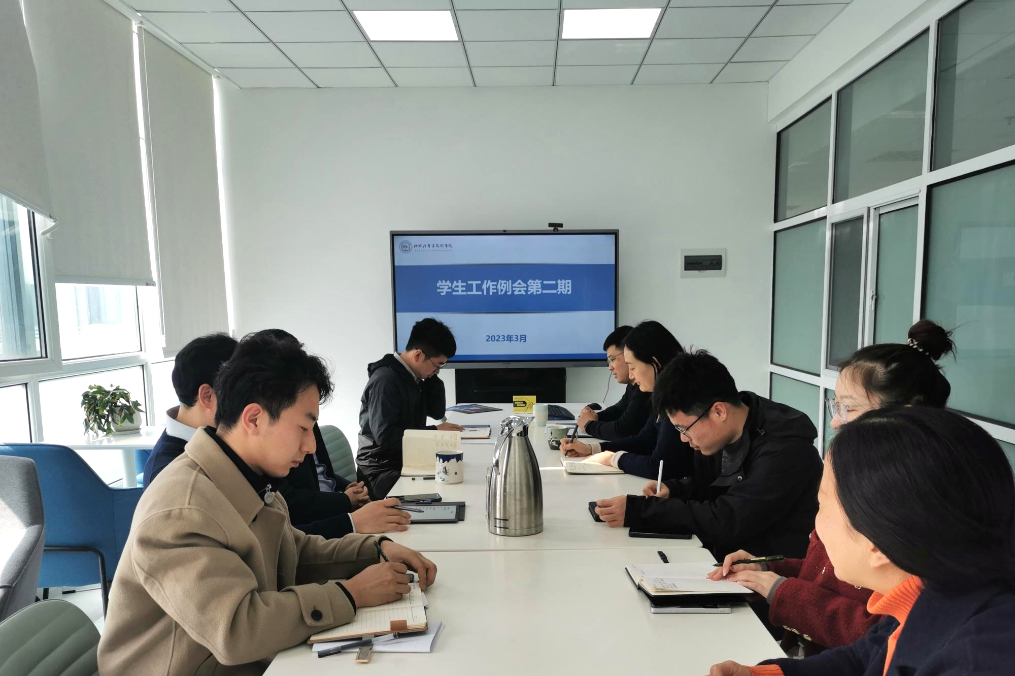 会议重点讨论了《tyc7111cc太阳成集团2023年学生工作要点》,2023年学院学生工作将重点从完善思政教育体系、保障学生健康成长、助推学生卓越发展、构建三全育人新格局等4个层面16个方面开展,将大抓基础基层与争先创优相结合,助力学院新一轮“双一流”建设,努力培育担当民族复兴大任的时代新人。郑珊珊表示,工作要点是今年工作的总纲要和行动方案,学工队伍一是要认真研究如何高效将重点工作落实落地,主动守好自己的“责任田”;二是要通过“五进”等方式,及时深入学生学习生活环境,研判后疫情时期学生思想状态等新情况新动态;三是注重培优树尖,以“尖兵”示范效应激发全院学生争先创优的活力,助力一流人才培养。