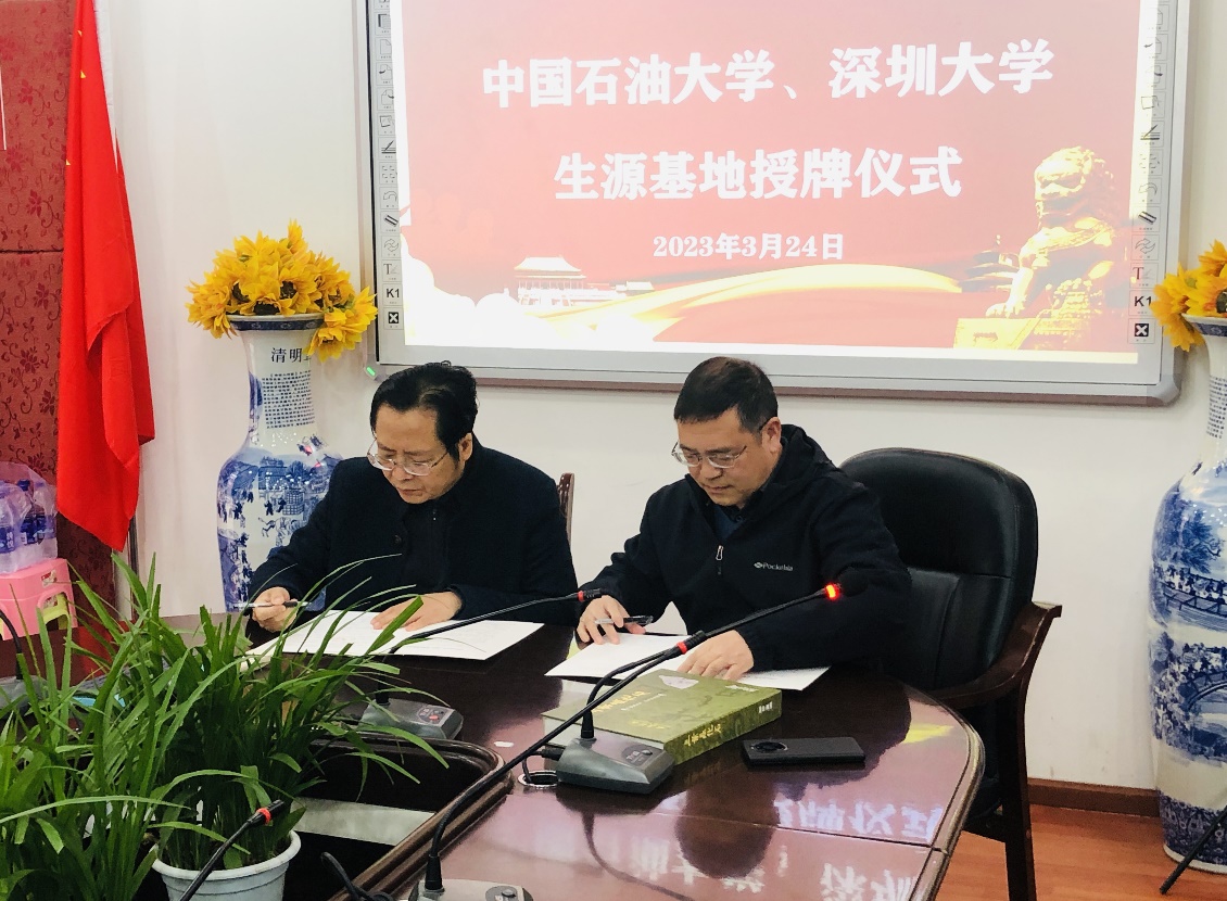 郝传宝、谭宝海两位老师应优秀生源基地——青海师范大学附属中学之邀参加招生咨询会并进行回访,3月24日抵达西宁,25日进校园宣讲并给学生和家长解疑答惑,与中学校领导、教务负责人及部分教师进行了座谈,对师大附中近几年为学校培养输送了优秀生源表示感谢。27日两位老师到西宁市第二中学,谭宝海给部分成绩优秀的学生作了《石大,在最美的季节,遇见你》的宣讲报告,让学生们多角度、全方位了解太阳成tyc7111cc,激励学生认真学习,引领优秀学生加盟学校。郝传宝代表学校与西宁二中签署了《优秀生源基地建设协议书》,并为“优秀生源基地”授牌,双方进行了座谈交流,双方表示将进一步加强沟通与合作,积极探索大学与中学合作育人的新模式,希望西宁二中继续为学校培养输送更多更优生源。