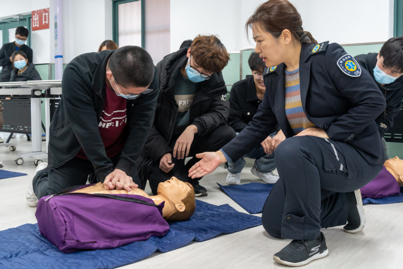 参加培训学生在教师指导下,分组进行胸外按压和人工呼吸的实践,初步掌握了急救基本知识和操作方法。