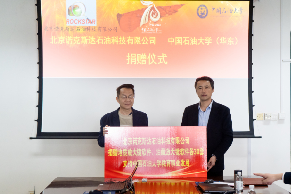 北京诺克斯达石油科技有限公司向学校捐赠人民币十万元整用于设立地质油藏放大镜奖学金,奖励地球物理学、地质资源与地质工程学科优秀本科生与研究生,同时向学校捐赠地质放大镜软件、油藏放大镜软件各向异性特征分析系统软件各30套,总价值4500万元,并提供软件培训等后续服务工作。