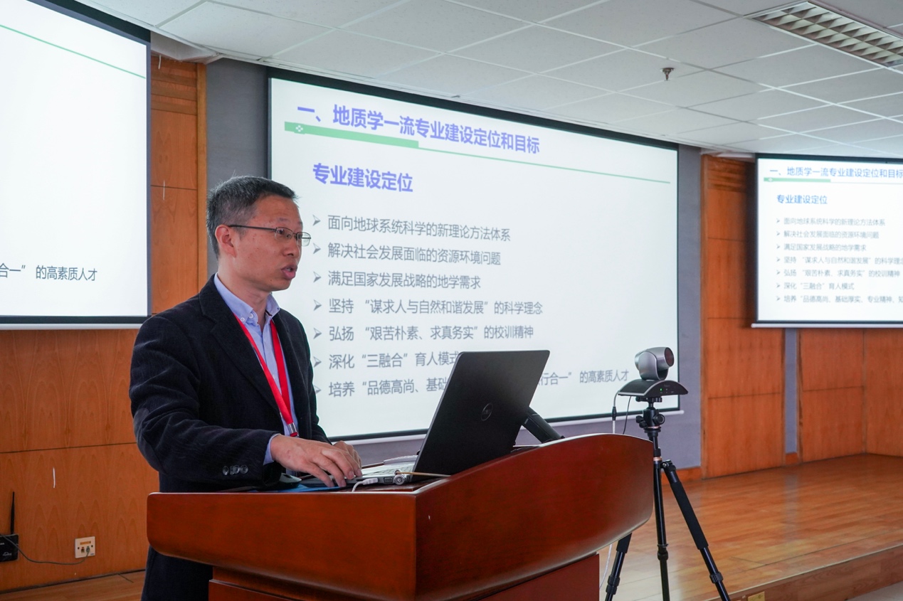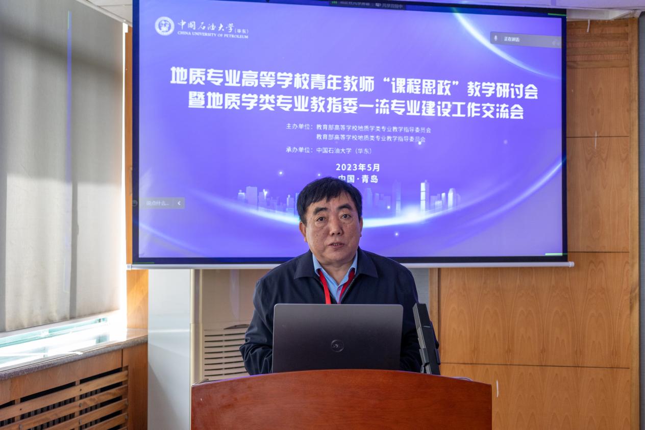 5月7日,由教育部高等学校地质学类专业教学指导委员会、教育部高等学校地质类专业教学指导委员会主办,太阳成tyc7111cc承办的地质专业高等学校青年教师“课程思政”教学研讨会暨地质学类专业教指委一流专业建设工作交流会在我校召开。教育部高等学校地质学类教学指导委员会秘书长章军锋主持大会开幕式,主任委员赖旭龙和副主任委员、太阳成tyc7111cc副校长操应长为大会致辞,太阳成tyc7111cc教务处长侯影飞也出席了会议。来自北京大学、南京大学、吉林大学、中国科学技术大学、中国海洋大学、中国地质大学(武汉)、太阳成tyc7111cc等20多所高等院校的120余名代表参加会议,其中线下参会代表80余人。