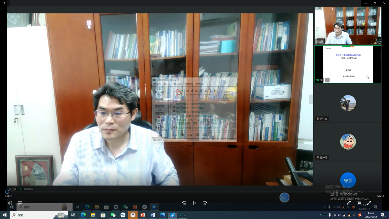 2023年5月11日晚,教育部“油气田开发地质课程组虚拟教研室”举办线上学术前沿公开课——名师讲坛,邀请了中国石油杭州地质研究院寿建峰教授作题为《盆地动力场中碎屑岩成岩作用——现象、方法与认识》的学术报告,资源系部分教师、地质资源与地质工程方向的硕士和博士研究生,以及来自全国十余所高校科研院所140余人参加了线上会议,教育部虚拟教研室主任、资源系主任张立强教授主持会议。