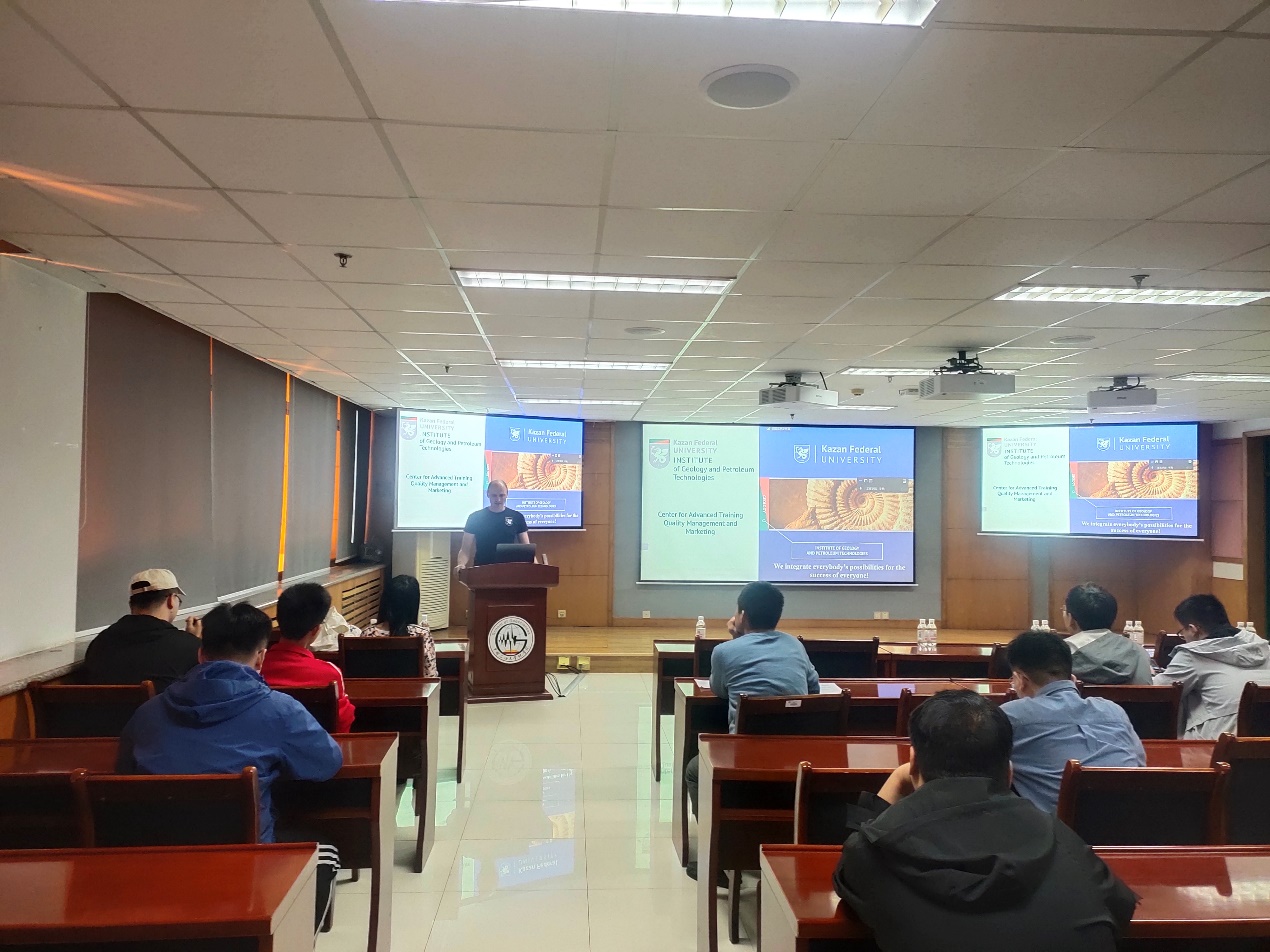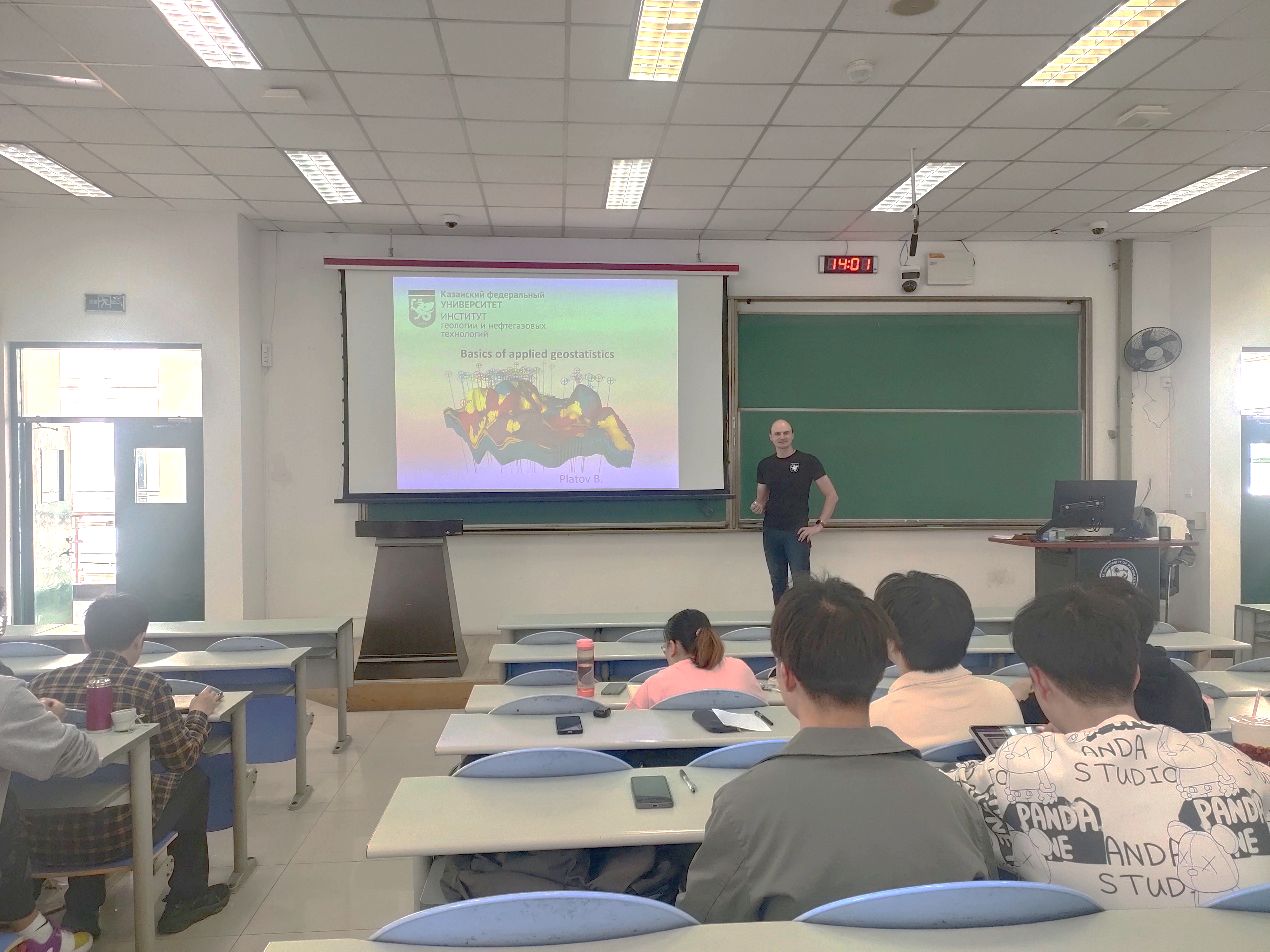 5月7日-5月12,我院申请并获批的2023年国际教育周研究生课程《地球科学与数据分析》顺利完成授课,该课程由俄罗斯喀山联邦大学Boris Platov副教授开设,主要讲授如何利用地质统计数据构建静态地质模型,课程内容包括变异函数及其参数、克里金和高斯随机函数模拟等。学院共20名研究生参与上课,通过课程学习和Boris副教授的认真讲解,学生掌握了建立静态地质模型的过程以及地质统计方法的具体应用。同时,全英文的课堂交流和互动也锻炼了学生的英语口语,提高了学生的英语交流能力。在课程授课之余,Boris Platov副教授分别与学校国际合作处和tyc7111cc太阳成集团就研究生双学位项目进行了交流,并参加学院组织的国际交流项目宣讲动员会,为学院100多人进行了现场宣讲。