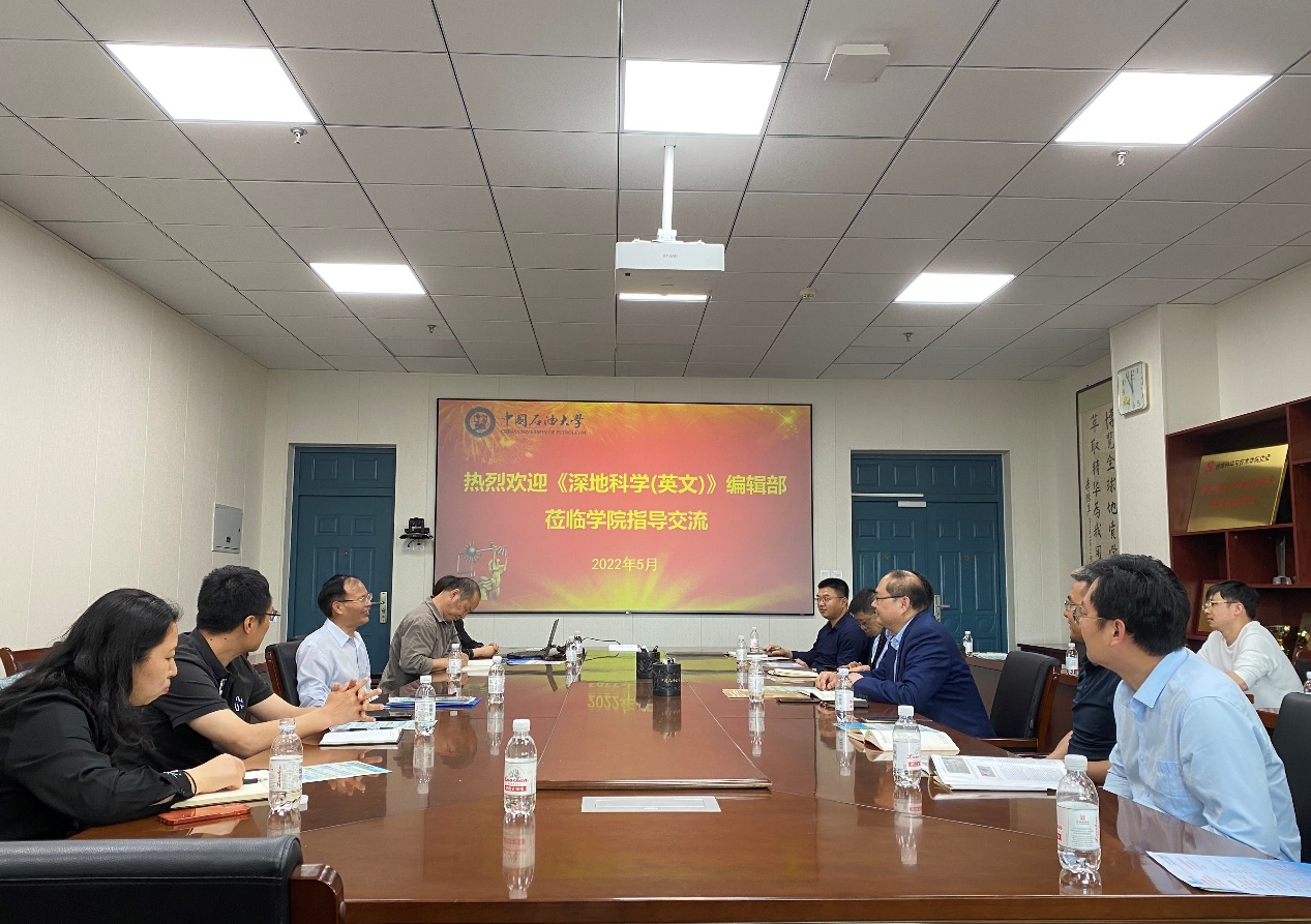 5月17日,《深地科学(英文)》编辑部副主编王建国一行来院交流,并于工科楼C座251会议室举行座谈交流会,学院副院长王健主持,《中国石油大学学报(自然科学版)》编辑部执行主编徐会永、主任刘为清、编辑俢荣荣、学院教授委员会主任刘可禹、学院部分专家参加座谈。