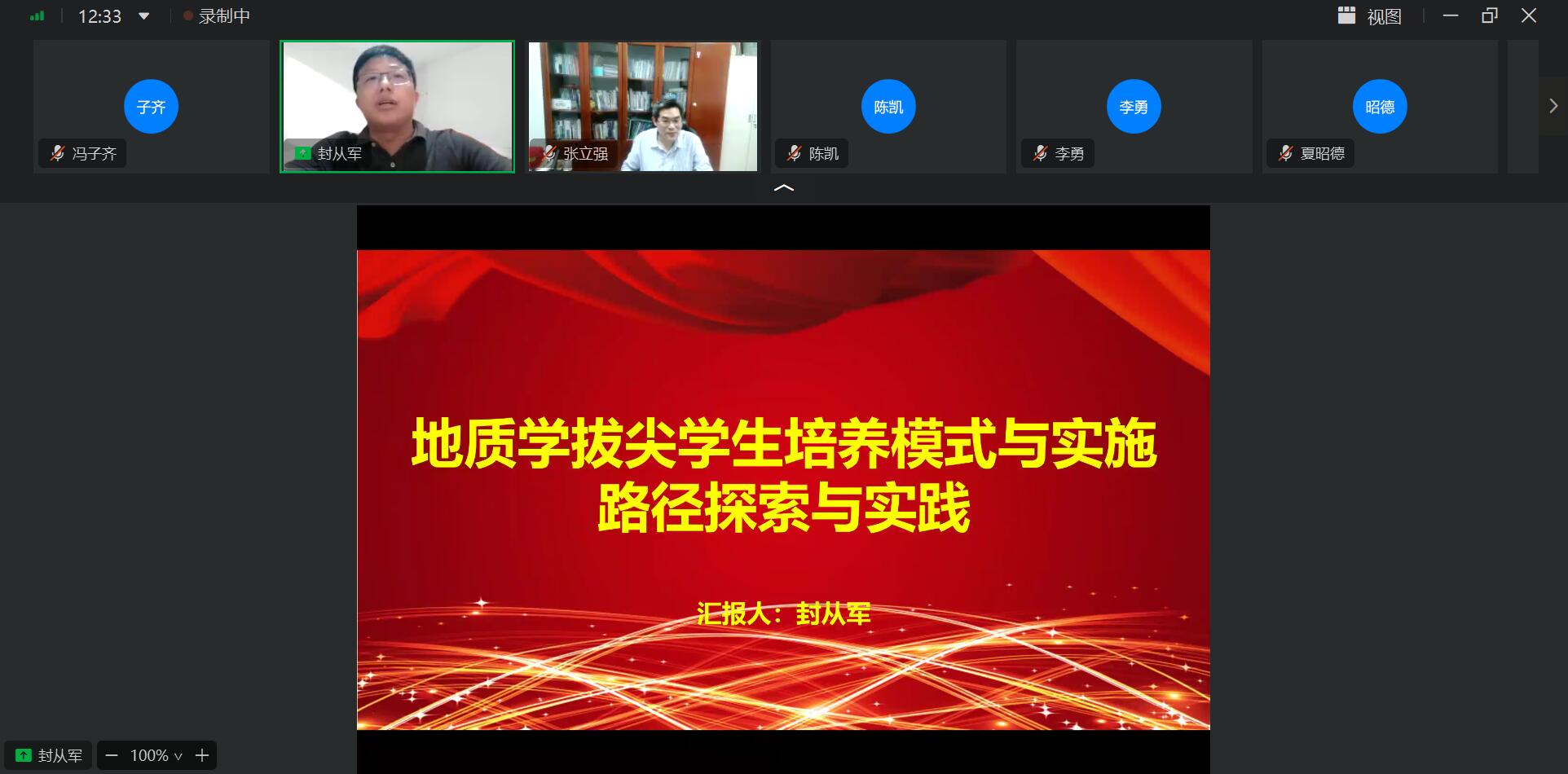 教育部虚拟教研室主任、资源系主任张立强教授主持线上会议
