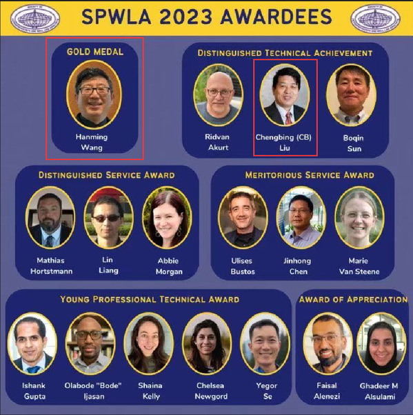 校友Hanming Wang、刘呈冰荣获2023年度SPWLA技术大奖