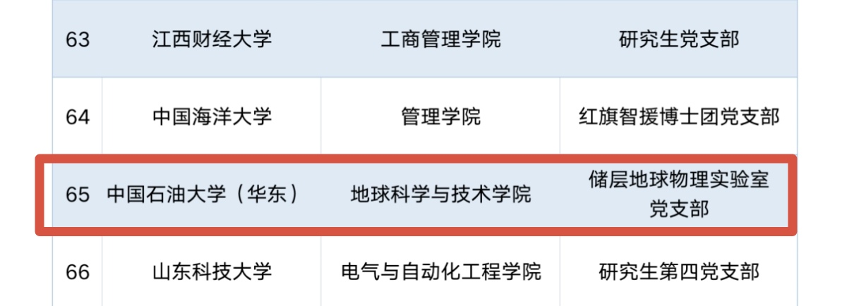 近日,第二批全国高校“百个研究生样板党支部”和“百名研究生党员标兵”创建培育工作验收结束,我院储层地球物理实验室党支部通过2年培育建设,经高校评估总结、属地党委教育工作部门把关审核、教育部相关司局和单位审查顺利通过验收。