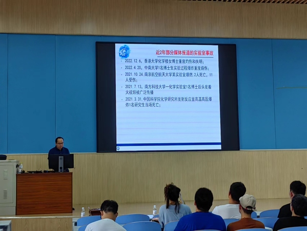 为进一步加强实验室安全管理,提高师生安全意识。9月8日下午,学院在南教300号举办实验室安全教育培训讲座,邀请学院实验室安全顾问、机电学院付建民教授担任主讲嘉宾,2023级博士、硕士研究生340余人参加了培训。