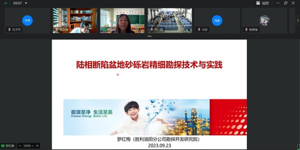 2023年9月23日下午,教育部油气田发地质课程虚拟教研室举办线上教学公开课—行业前沿专题讲座,邀请了中石化胜利油田勘探开发研究院首席专家罗红梅研究员作题为《陆相断陷盆地砂砾岩精细勘探技术与实践》的行业前沿专题讲座,资源系部分教师、地学院地质资源与地质工程研究生,以及来自全国十余所高校科研院所80余人参加了线上会议,教育部虚拟教研室主任、资源系主任张立强教授主持会议。