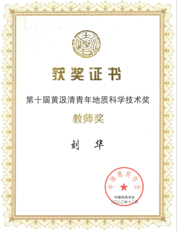 2020年11月,第十届黄汲清青年地质科学技术奖揭晓,我院刘华教授获黄汲清青年地质科学技术奖教师奖。