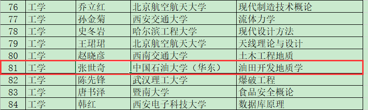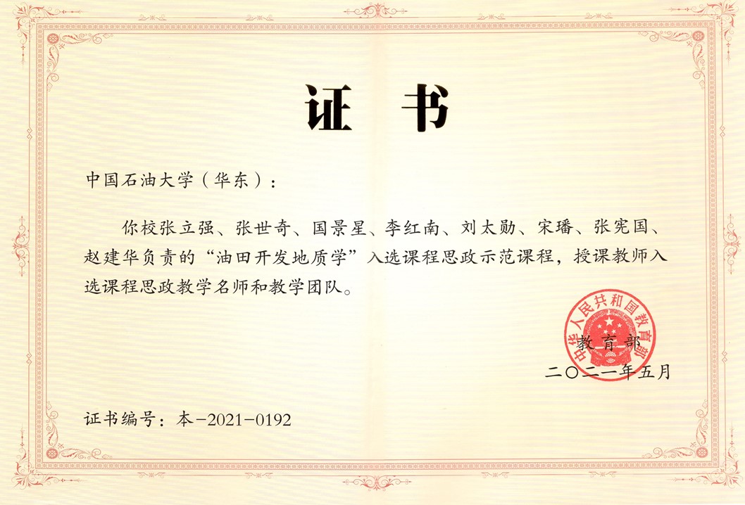 2021年6月,我院张立强、张世奇、国景星、李红南、刘太勋、宋璠、张宪国、赵建华负责的《油田开发地质学》入选国家课程思政普通本科教育示范课程,授课教师入选国家课程思政教学名师和教学团队。