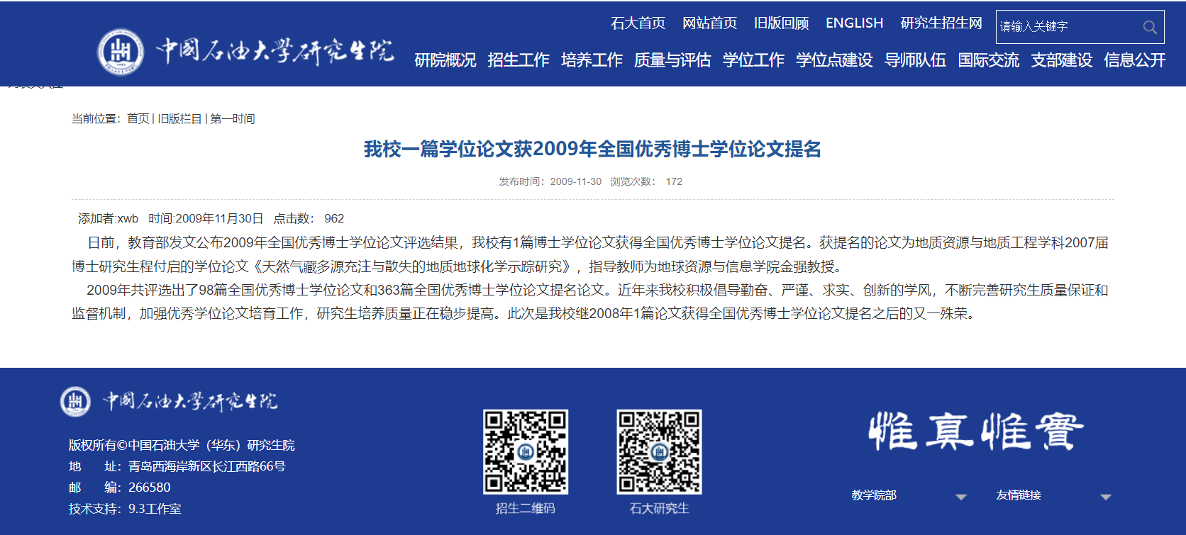 根据ESI(基本科学指标)数据库 2015年 7月9日发布的最新国际论文统计数据显示,中国石油大学地球科学学科跻身 ESI 全球前1%。