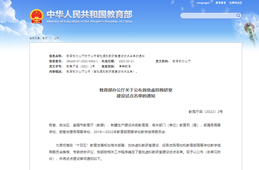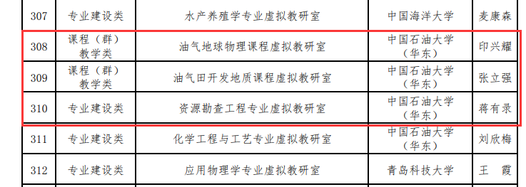 2022年2月,教育部办公厅公布了首批虚拟教研室建设试点名单,我校共有4个建设项目入选,其中我院申报的3项建设项目全部获批,包括蒋有录教授负责的资源勘查工程专业虚拟教研室、印兴耀教授负责的油气地球物理课程虚拟教研室、张立强教授负责的油气田开发地质课程虚拟教研室。